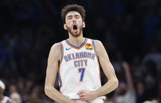 目前,雷霆球员切特-霍姆格伦投篮9中8,三分4中3、罚球6中5得到24分6篮板1助攻2抢断1盖帽。